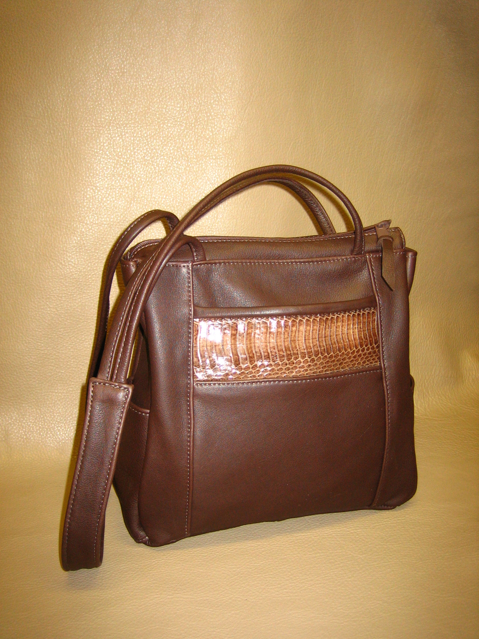 Luxury Leather & Snake Skin Purse Luxury Leather and Snakeskin Purse/Organizer. 11" Wide x 10" High x 3" Deep. Front Snake Appliquéd Pocket also features two side cell phone/sunglass pockets, a large zipper pocket in back along with a 9" zipper pocket inside the bag; all leather Luxury Leather & Snake Skin Purse Luxury Leather and Snakeskin Purse/Organizer. 11" Wide x 10" High x 3" Deep. Front Snake Appliquéd Pocket also features two side cell phone/sunglass pockets, a large zipper pocket in back along with a 9" zipper pocket inside the bag; all leather