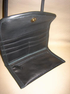 with card holders and zipper compartment. Hidden magnetic snap flap